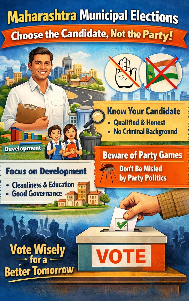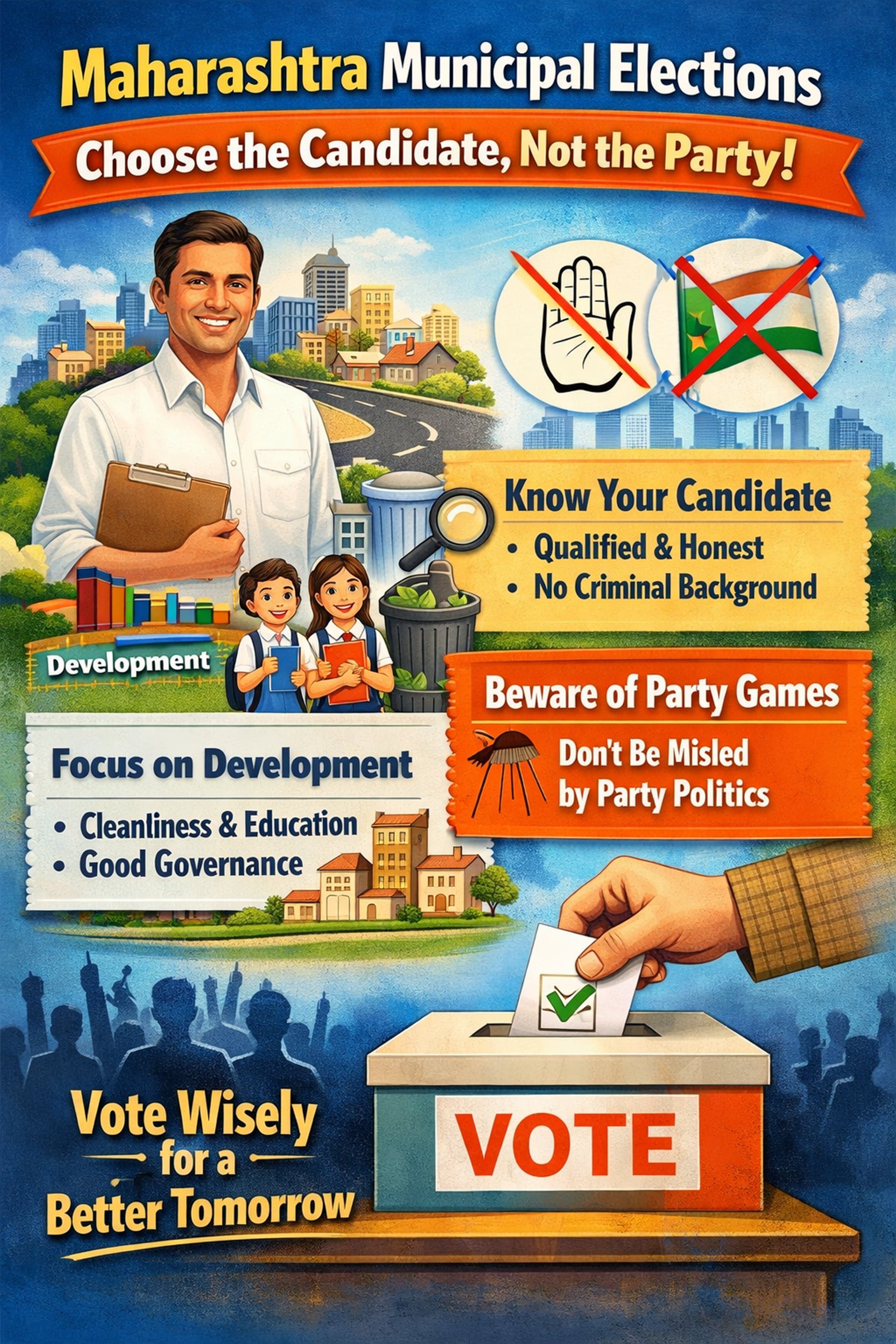 The Maharashtra municipal elections are a crucial moment for local democracy. These elections directly impact our daily lives—roads we use, cleanliness in our neighbourhoods, quality of local schools, water supply, waste management, and overall civic governance. Yet, despite their importance, municipal elections are often treated as a party-driven contest rather than a people-driven choice. This mindset needs to change.