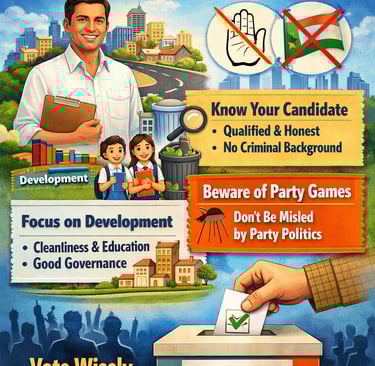 Municipal elections are where democracy is most visible and most effective—if voters exercise their power wisely. Choosing the right candidate can transform a ward; choosing the wrong one can set it back by years.